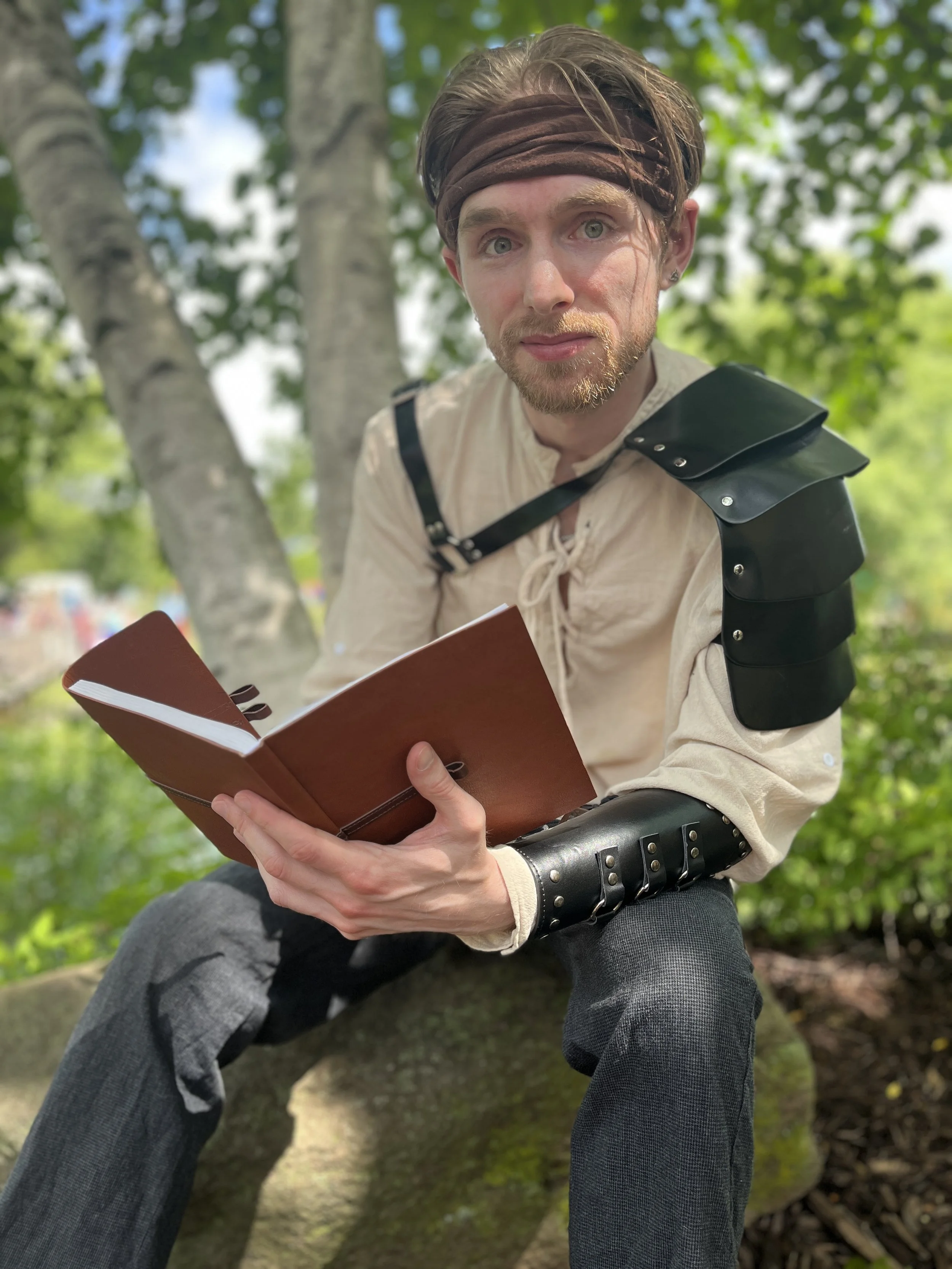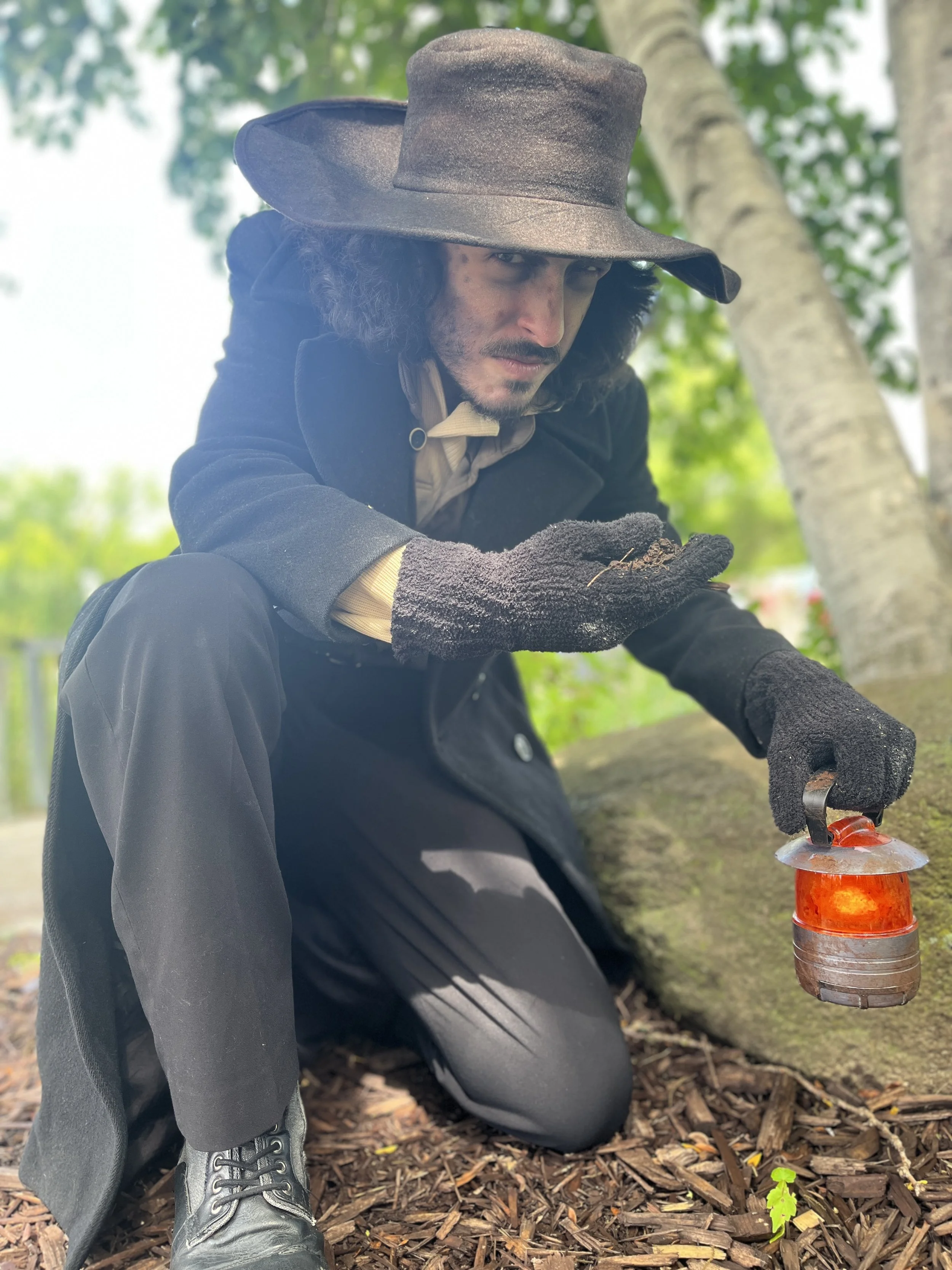 Gabriel Montgomery (He/Him) is an actor, visual artist, and filmmaker. He spends his free time away from Aewenor tending to his birds and drafting his next adventure. Gabriel is excited to reveal Alistair to the world and relive every moment with the crew of the damned. Gabriel also provides all official campaign artwork.